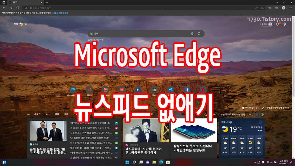 윈도우를 설치하면 기본적으로 설치되는 인터넷 브라우저인 마이크로소프트 엣지 시작페이지 설정과 왜 없는지 모르겠지만 초기 설정에는 없는 홈버튼을 설정하는 방법입니다. edge browser 시작