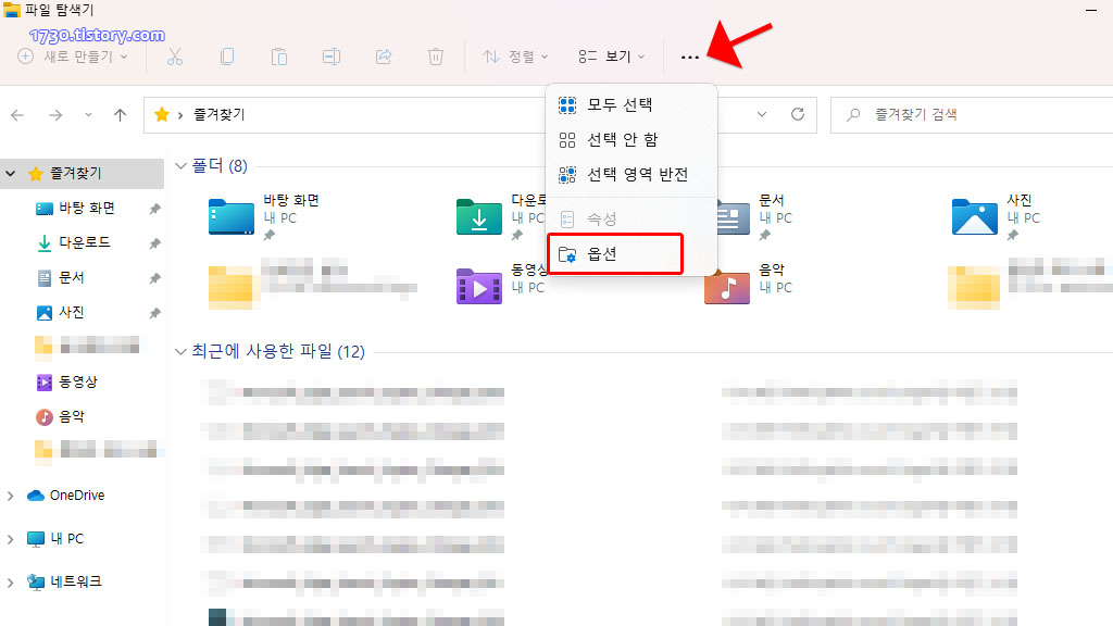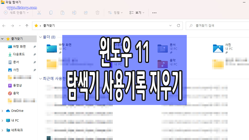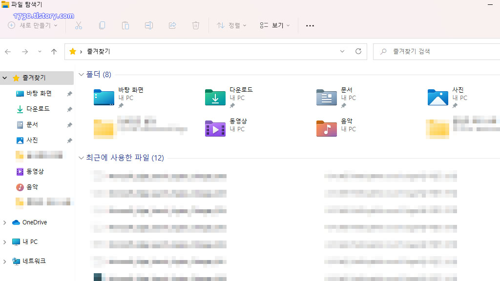 탐색기를 실행하면 왼쪽 즐겨찾기 목록에 열어 봤던 폴더와 오른쪽에는 최근 사용한 파일이라며 열어봤던 파일목록이 고스란히 남아있는 데 사용기록을 확인하는 데는 용이하겠지만 개인 정보가 그대로 노출이 될 수도 있어 기능을 끄고 사용할 수 있는데요.