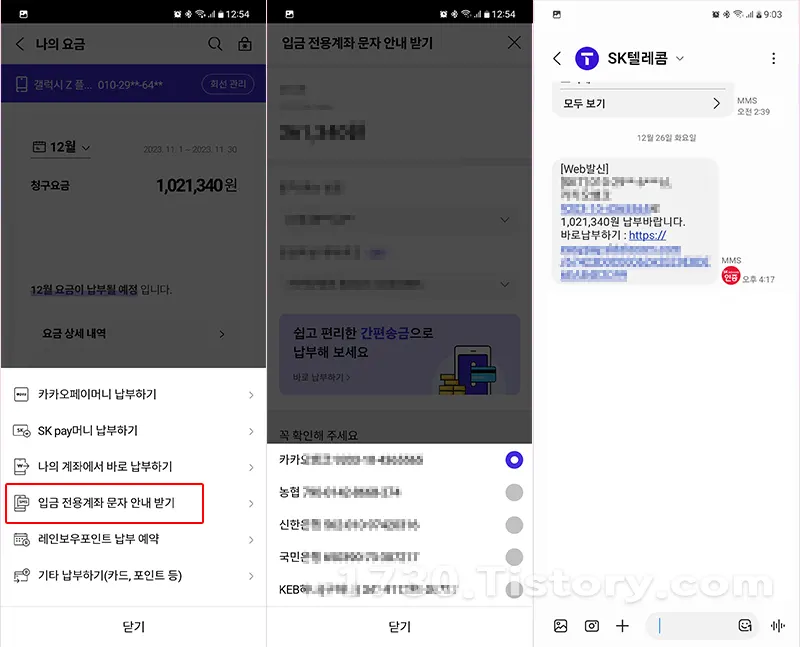 - 계좌번호와 요금이 문자메시지로 오게 됩니다.